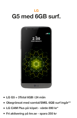 Tele2 är bara en krona dyrare än Comviq vid en beställning av en LG G5. Man får dock 1 GB mindre data en vad man får med Comviq, alltså 5 GB istället för 6 GB. Med Tele2 så kan man säga upp abonnemanget när som helst efter en månad, dock om man har en telefon på avbetalning, i detta fall LG G5, så behöver man fortsätta att betala av den i den månadsplan man lagt upp betalningen i. I och med detta så finns möjligheten att betala av endast en LG G5 helt räntefritt om man vill det. Tele2 finns också som butik i Sverige. Nackdelen med Tele2 är att mobilerna ofta blir dyrare än hos övriga operatörer eftersom att abonnemanget inte är bindande.