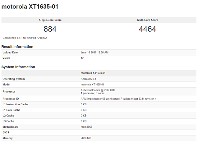 Det dök under gårdagen upp en ny enhet i benchmarkprogrammet GFXBench. Modellen har beteckningen XT1635-01 men tros vara uppföljaren till Moto X Play – Moto Z Play. Av GFXBench att dömma så kommer moto Z Play bli utrustad med en Snapdragon 652 processor tillsammans med 3 GB RAM. Av bilden att döma kommer telefonen ha Android 6.0 förinstallerat.