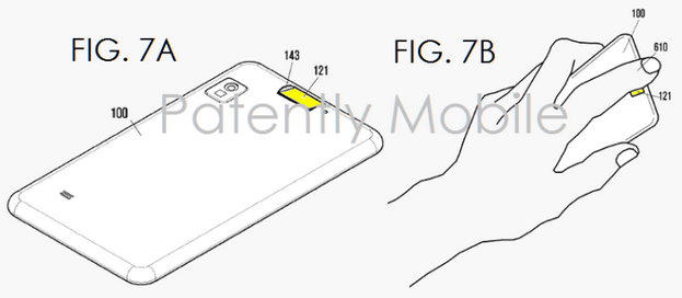 Samsung har under morgonen tagit patent på två nya saker. Dels så har man tagit patent på en rund hemknapp (med samma placering, under skärmen) men också patent på en fingeravtrycksläsare som ska sitta allra högst upp på baksidan vad vi förstår av patentbilderna.