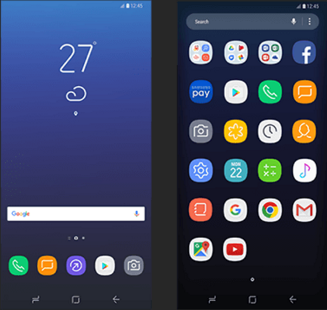 Hem Bilder på gränssnittet till Samsung Galaxy S8 och S8+