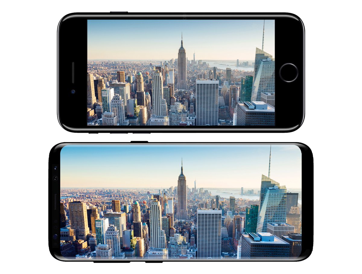 med att ta en titt på bilden där Galaxy S8 och S8+ ställs mot iPhone 7 och 7