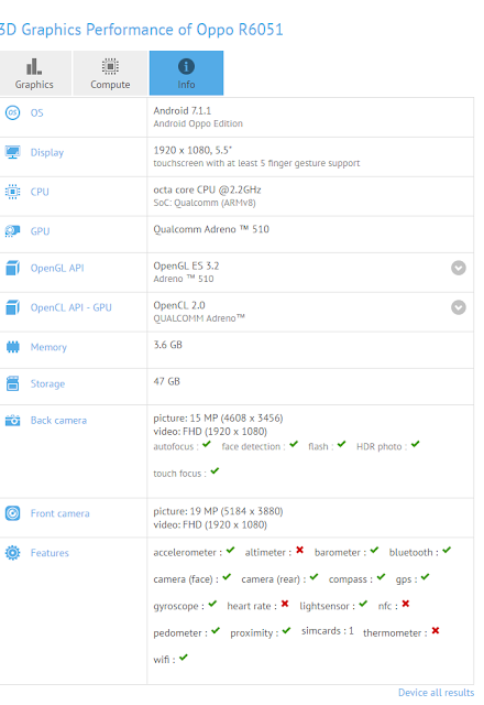 har beteckningen OPPO R6051 och erbjuder enligt benchmarkprogrammet GFXBench en