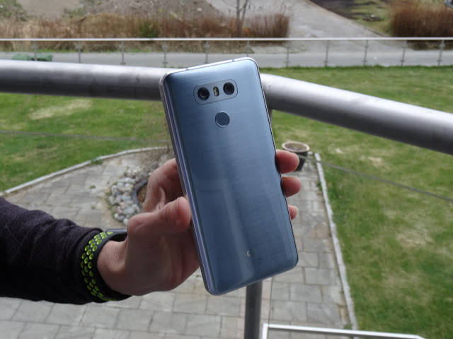 LG G6 har fått en baksida som denna gång skyddas av glas, GorillaGlas 5. Jag har testat den silverfärgade varianten av telefonen, som trots sin glans ser ut att vara gjord i borstad metall. Troligtvis har G6 fått en behandlad metallyta som LG lagt en glasskiva över. Ruskigt snyggt är det hur som helst! Den stora akilleshälen med glas brukar vara fingeravtryck. LG har lagt på en yta på G6 som stöter bort fingeravtrycken riktigt bra. Jag misstänker dock att dessa fingeravtryck blir betydligt mer påtagliga på den svarta varianten av LG G6. Baksidan är svagt tvålformad så att telefonen ska passa perfekt i handen. På baksidan finns också de dubbla kamerorna (med dubbla LED-blixtar), den kombinerade fingeravtrycksläsaren och av/på-knappen och en G6-logga. Det är mycket smidigt att LG placerat av/på-knappen på baksidan eftersom pekfingret vilar runt den positionen.
