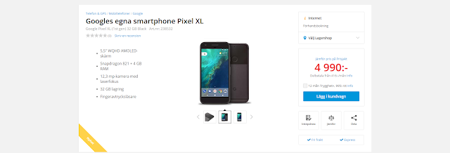 Det eftersom hemelektronikkedjan NetOnNet tagit in den svarta versionen av Pixel XL med 32 GB inbyggt minne. Det är däremot oklart om NetOnNet liksom Webhallen (när det gäller OnePlus 5) gråimporterat telefonen eller om NetOnNet och Google håller på att inleda ett samarbete gällande Googles Pixeltelefoner.