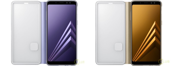 Självklart gömmer sig telefonen sig i fodralet. Vi kan se att Samsung liksom man redan gjort med Galaxy S8- och Galaxy Note 8 kommer utrusta Galaxy A8+ med det nya 18:;9-formatet. Det ser således ut som att Galaxy A8+ kommer få sin fingeravtrycksläsare placerad på baksidan.