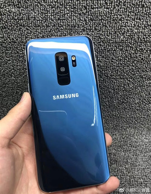 Det ser ut som att Samsung kommer presentera en blå version av Galaxy S9+. Vi kan se att Galaxy S9+ kommer få dubbla kameror på baksidan tillsammans med fingeravtrycksläsaren placerad under dessa.