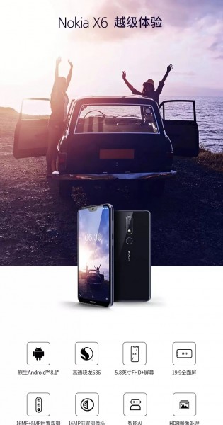 I övrigt kommer Nokia X6 få en fingeravtrycksläsare placerad på baksidan, ett 3060 mAh-batteri och Android 8.1 Oreo direkt från start.
