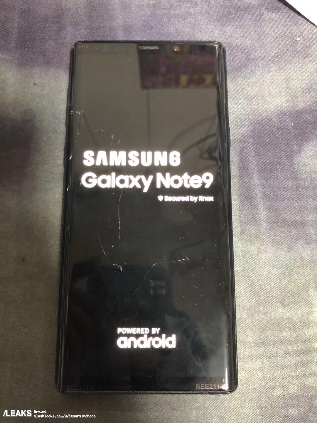 Som ni kan se på bilden är displayen på den här Galaxy Note 9:an sprucken, och spräckta skärmar svider något otroligt i min själ 😉 På baksidan ser vi att telefonen fått dubbla kameror tillsammans med en LED-blixt och en fingeravtrycksläsare.