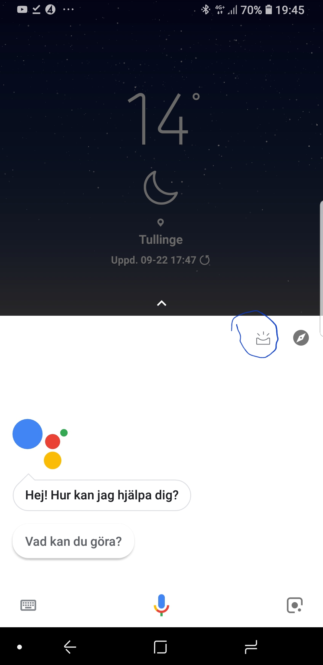 För att komma till sidan öppnar du Google Assistent. Sedan trycker du på ikonen näst högst upp i det högra hörnet (se bild). Här får du tips på diverse saker du kan göra med Assistent.