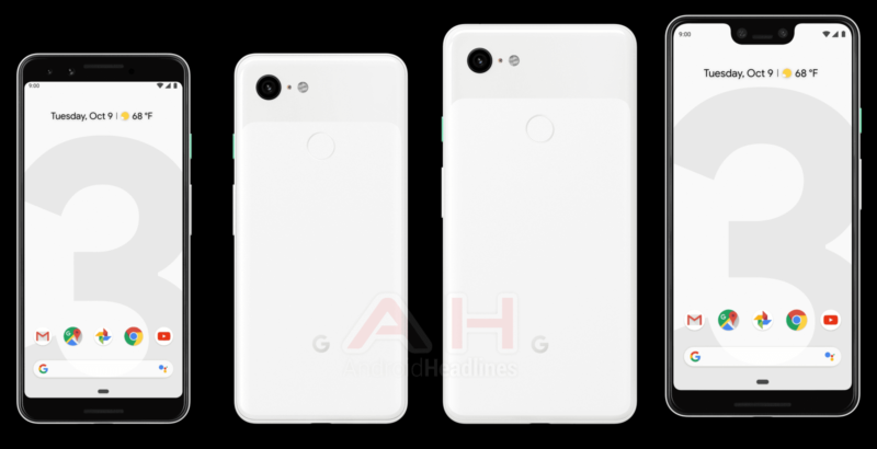 Till skillnad från förra årets Pixel 2 och Pixel 2 XL kommer Google släppa Pixel 3-mobilerna i likadana färger. På bilderna i detta inlägg kan vi se att de vita versionerna av mobilerna kommer få mintgröna av/på-knappar. Den rosa kulören (som Google påstås döpa till ”Sand”) ser ut att få en baksida i svagt nyanserat rosa. Utöver det kommer Pixel 3 XL få en flärp medans Pixel 3 kommer få flärpar ovanför och under displayen istället.