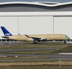 På bilden ovan ser vi en kommande Airbus A350-900XWB med SAS nya målning. Vi ser att texten SAS på långsidan blivit mer tydlig jämfört med tidigare men det ser samtidigt ut som att SAS behållit den blåa fenan med texten ”SAS”. Hela bilden kan ni se ovan och SAS alla plan kommer få den här målningen i framtiden!