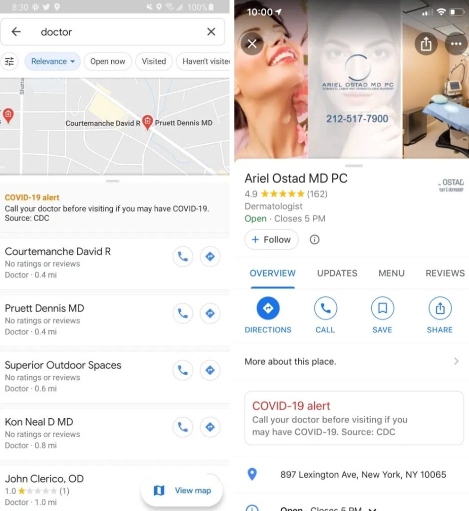 Det ser ut som att det kommer komma upp en text om Coronaviruset där du uppmanas ringa din doktor innan du besöker denna om du misstänker att du kan ha råkat få Covid 19. Det här känns helt klart som en smidig funktion.
