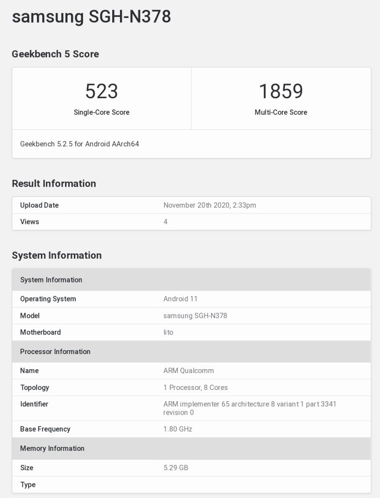 Samsung SGH-N378 (5G) Spotted On Geekbench.