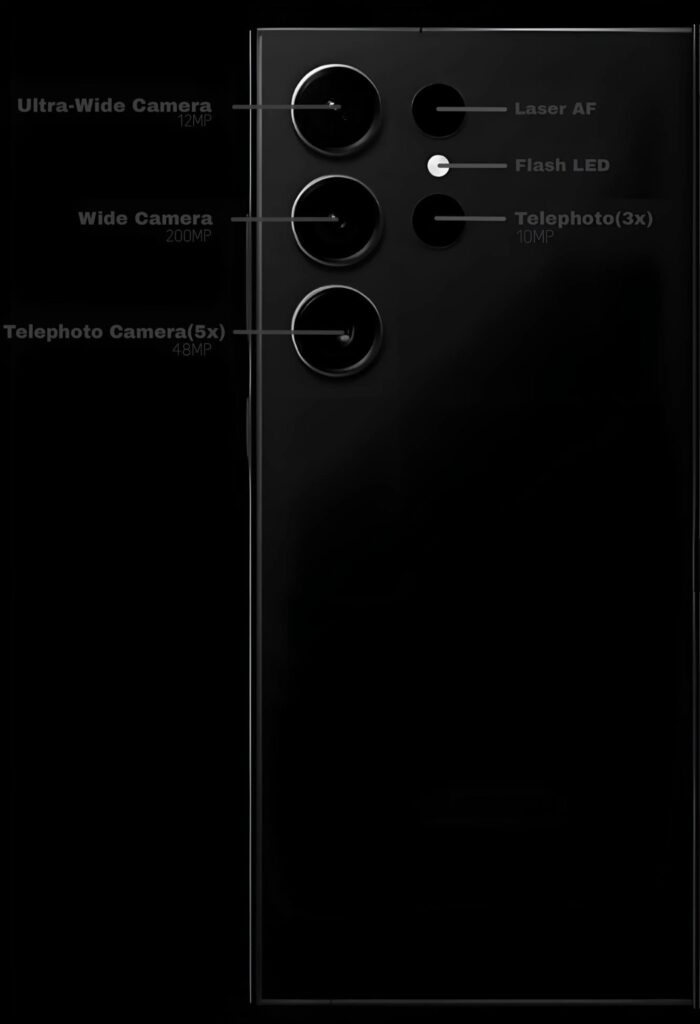 Det sägs att mobilen åter igen kommer få en primär kamera vars upplösning kommer vara 200 megapixlar. Vidare sägs det att kameran för vidvinkel kommer få en upplösning på 12 MP. Det jag tycker verkar mest intressant dock är kamerorna för zoom. De sägs bli två stycken. En 10 MP-kamera med stöd för upp till 3x optisk zoom men det sägs också att mobilen kommer få en 48 MP-kamera med stöd för 5x optisk zoom. Om detta stämmer innebär det att mobilen har stöd för 8x optisk zoom. Det nämns också att Samsung troligen kommer fortsätta erbjuda 100x hybrid zoom.