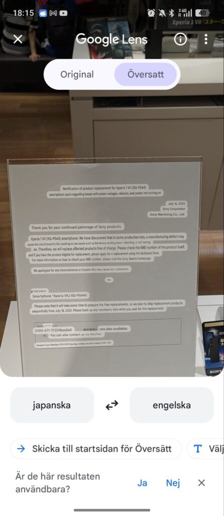 Just nu befinner vi oss i Japan och vi vet nyligen och besöktes Sonys mäktiga Showroom i Tokyo. Där kunde vi ta en titt på Xperia 1 VII. Men det var ett problem med den.