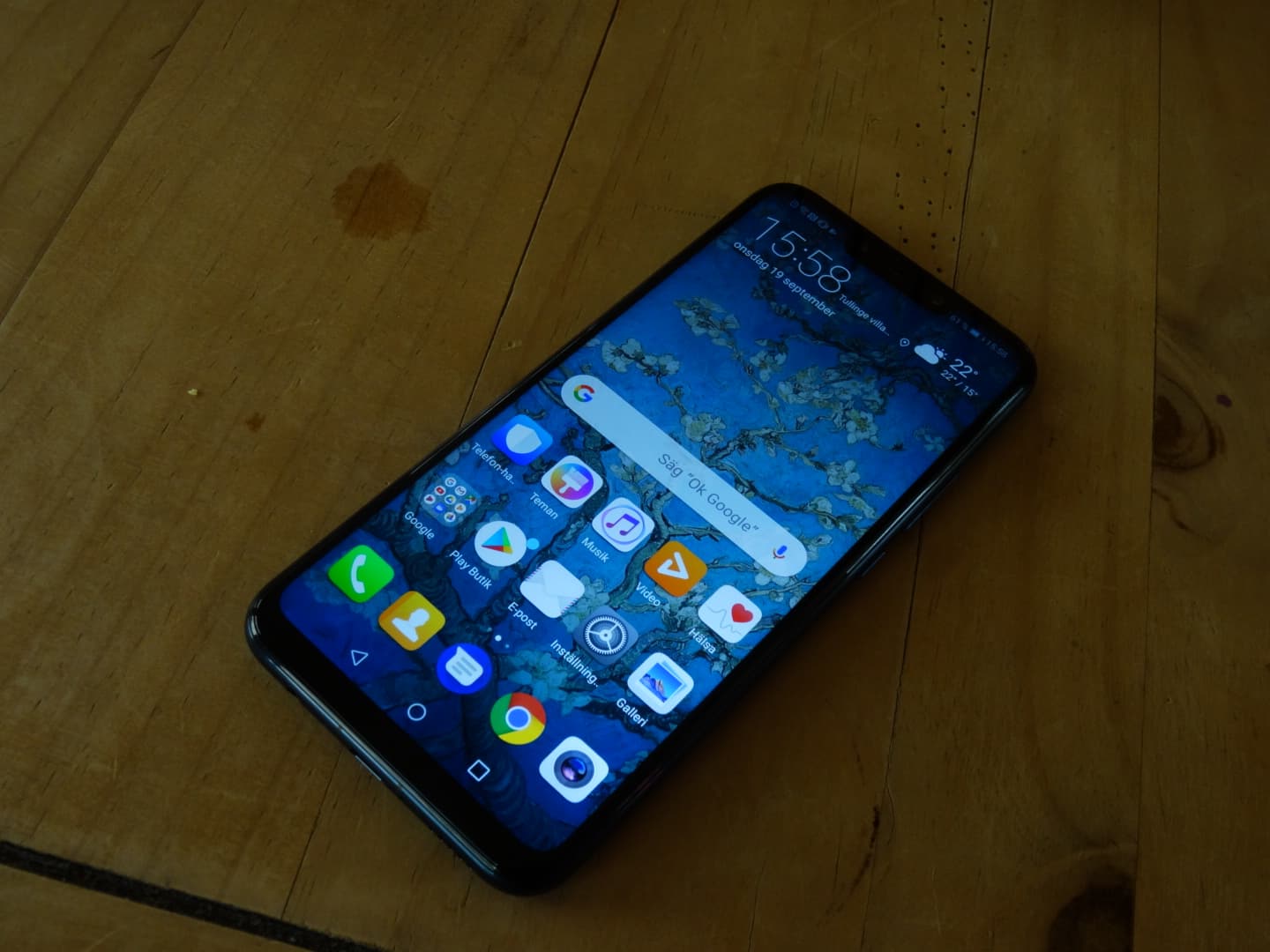 Telefonen har fått en 6,3 tumsskärm med Full HD+ – upplösning tillsammans med en IPS-panel. Telefonen har en riktigt bra display med färger som ”poppar” bra. Mate 20 Lite har fått en flärp på framsidan (en ganska stor sådan), men det är inget jag stör mig på. Mate 20 Lite är är en av Huawei:s första mobiler som använder Huawei Kirin 710, ett chipp som tillverkaren själv har utvecklat för mellanklassmobiler. Av det lilla jag hunnit testa så flyter allt på riktigt bra i telefonen, men det återstår att se om jag har samma uppfattning efter att ha pressat telefonen i några spel.